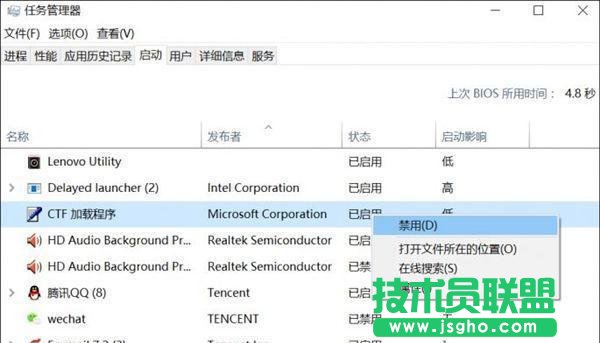 以Windows 10系統為例,首先按“Ctrl+Alt+Del”進入任務管理器,在啟動選項卡中將無關的啟動項都設定在“禁用”狀態。