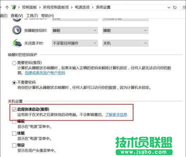 對了,有些電腦裝完系統后這個“啟用快速啟動”選項雖然默認處于勾選狀態,但實際卻不起作用。所以建議大家按上面步驟手動關閉再開啟一下。
