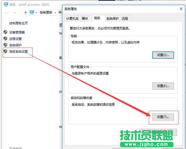 鼠標右鍵點擊此電腦,進入“高級系統設置→系統設置→高級”,點擊啟動和故障修復中的設置按鈕。