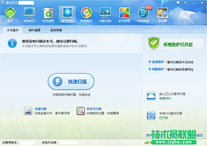 金山衛士是一款由金山網絡技術有限公司出品的查殺木馬能力強、檢測漏洞快、體積小巧的免費安全軟件。它采用金山領先的云安全技術,不僅能查殺上億已知木馬,還能5分鐘內發現新木馬;漏洞檢測針對windows7優化,速度更快;更有實時保護、插件清理、修復IE等功能,全面保護電腦的系統安全。