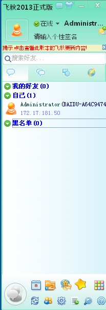 飛秋(FeiQ)是一款局域網(wǎng)聊天傳送文件的綠色免費(fèi)軟件(目前不開(kāi)源),它參考了飛鴿傳書(shū)(IPMSG)和QQ, 完全兼容飛鴿傳書(shū)(IPMSG)協(xié)議,具有局域網(wǎng)傳送方便,度快,操作簡(jiǎn)單的優(yōu)點(diǎn),同時(shí)具有QQ中的一些功能。