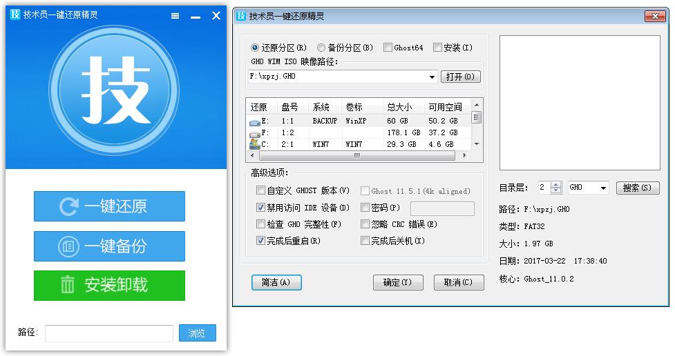 技術員一鍵還原備份