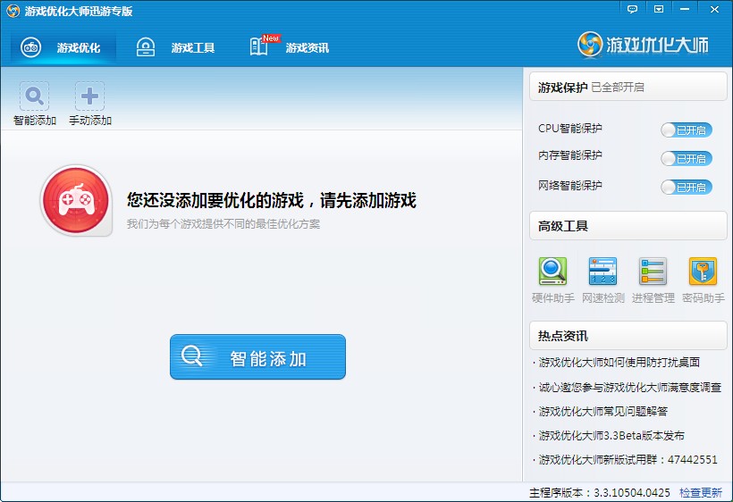 游戲優(yōu)化大師是專為游戲用戶打造的專業(yè)優(yōu)化工具箱,致力于解決游戲型用戶的電腦配置、系統(tǒng)優(yōu)化等問(wèn)題,是超過(guò)千萬(wàn)游戲用戶推薦的游戲必備工具。游戲優(yōu)化大師提供專業(yè)的分析,針對(duì)所有可能引起卡機(jī)的問(wèn)題,對(duì)系統(tǒng)全面檢查,深度分析卡機(jī)的原因并快速地解決,同時(shí)對(duì)于在打游戲時(shí)不必要的進(jìn)程服務(wù),用戶可以選擇暫停關(guān)閉、限制和清理內(nèi)存。另外,軟件提供了對(duì)系統(tǒng)進(jìn)行調(diào)整仍可隨時(shí)恢復(fù)的優(yōu)化策略,不傷害系統(tǒng),分析了解占用資源的進(jìn)程,防止無(wú)關(guān)閉有用的系統(tǒng)進(jìn)程。