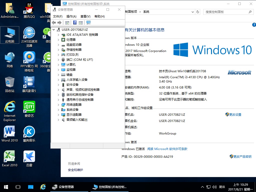 技術(shù)員 Ghost Win10 1703 x86 裝機版 201709