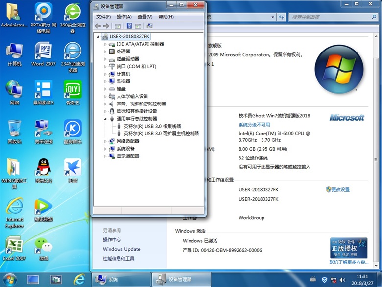 技術(shù)員 GhostWin7Sp1x86 裝機(jī)增強(qiáng)版2018 ==