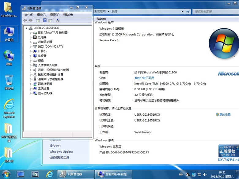 技術員 GhostWin7Sp1x32 純凈版201806 ==