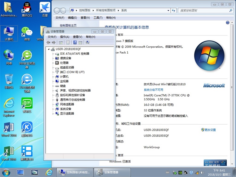 技術員 GhostWin7Sp1x86 裝機版201810New ==