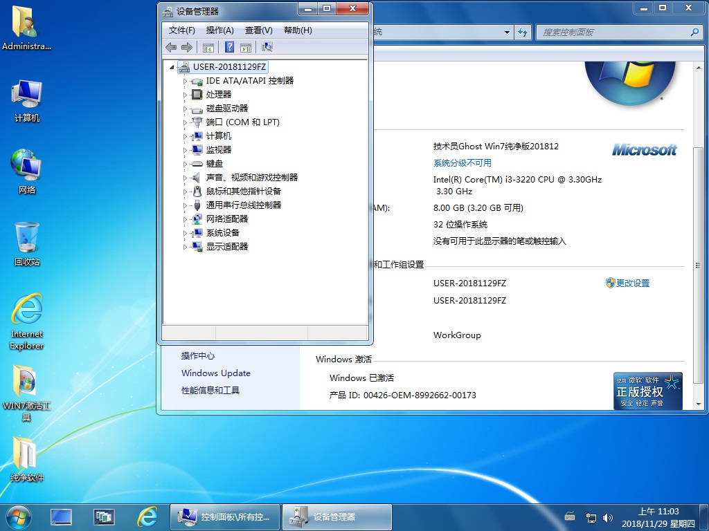 技術員 GhostWin7Sp1x32 純凈版201812New ==