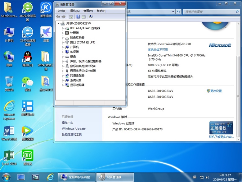 技術員 GhostWin7Sp1x64 裝機版201910 ==