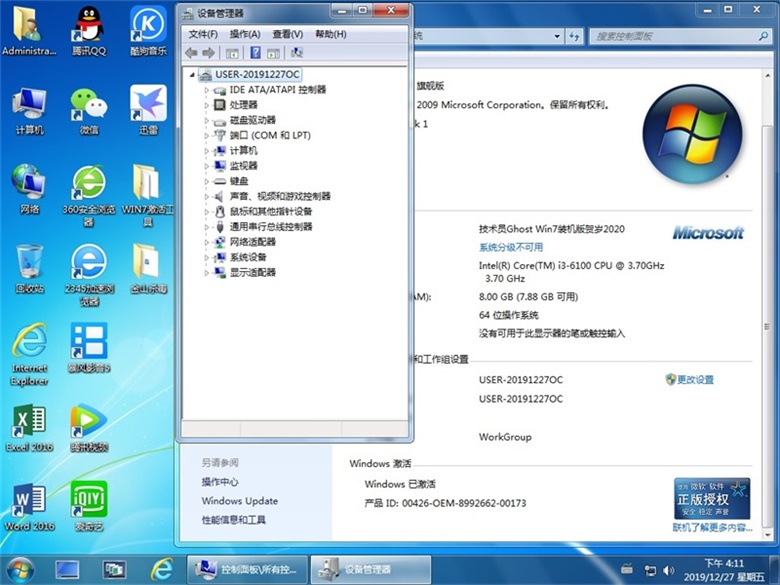技術(shù)員 GhostWin7Sp1x64 裝機(jī)版賀歲2020 ==