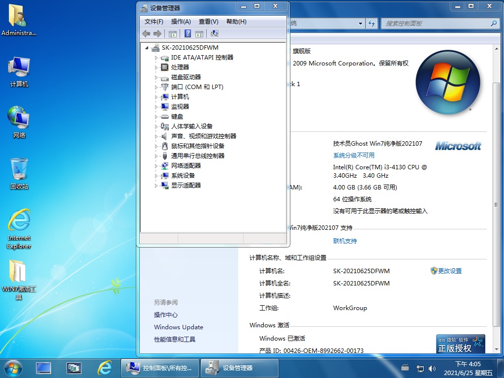 技術員 GhostWin7Sp1x64 純凈版202107 ==