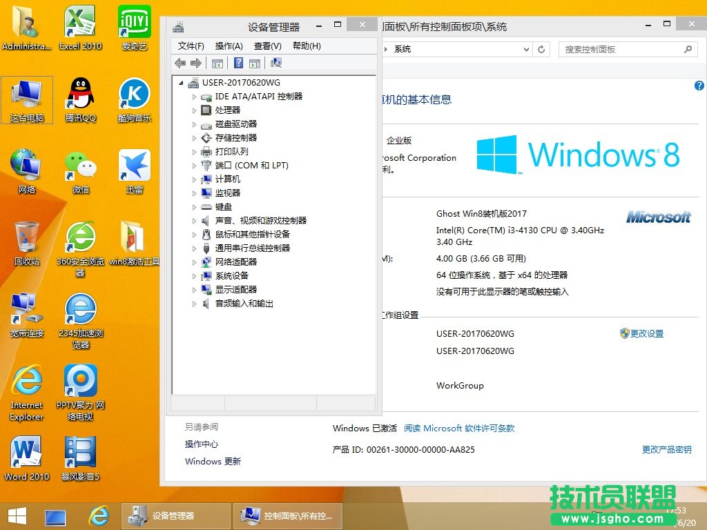 15、集成了自2017年流行的各種硬件驅動,首次進入系統即全部硬件已安裝完畢。