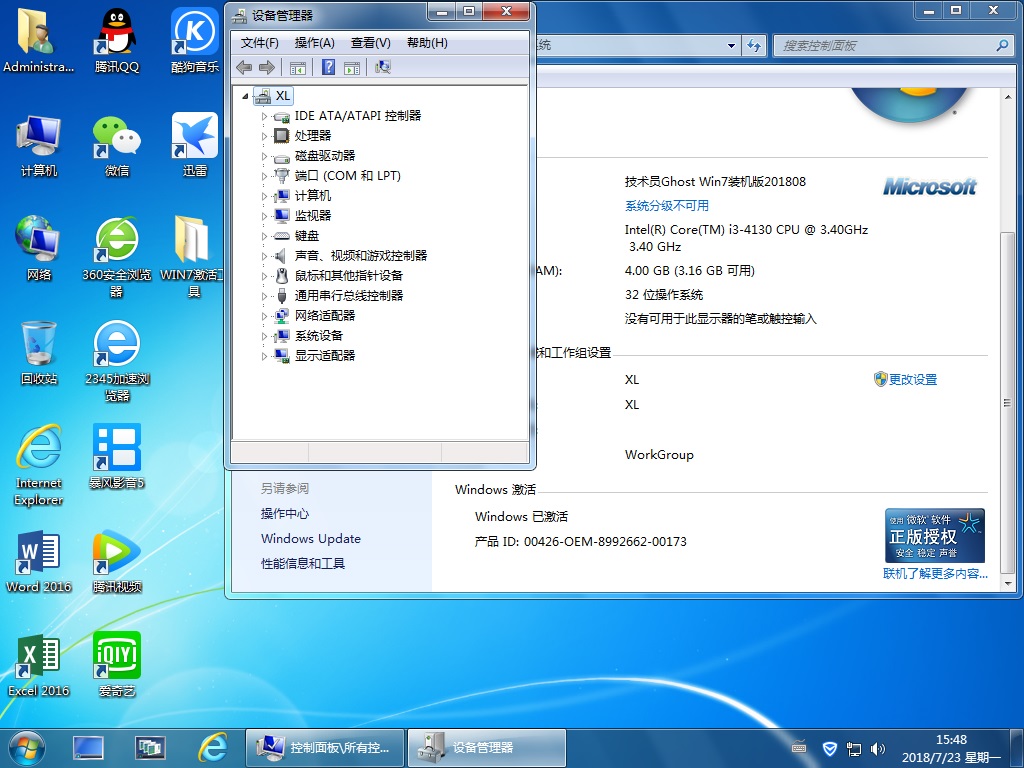 技術員 GhostWin7Sp1x86 裝機版201808 ==